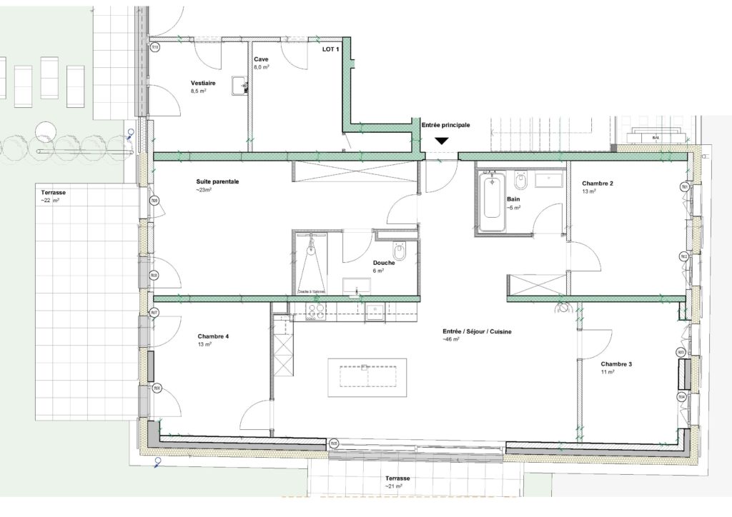 - Deux terrasses de 21 m² et 22 m²